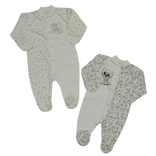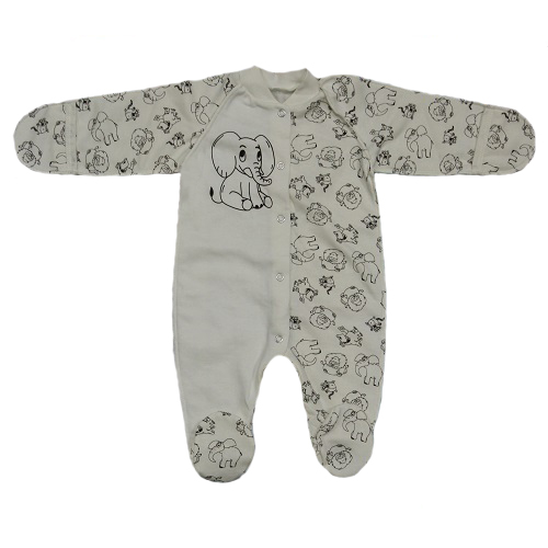 Комбинезон без воротничка, с длинным рукавом, спереди и между ножек на кнопочках.