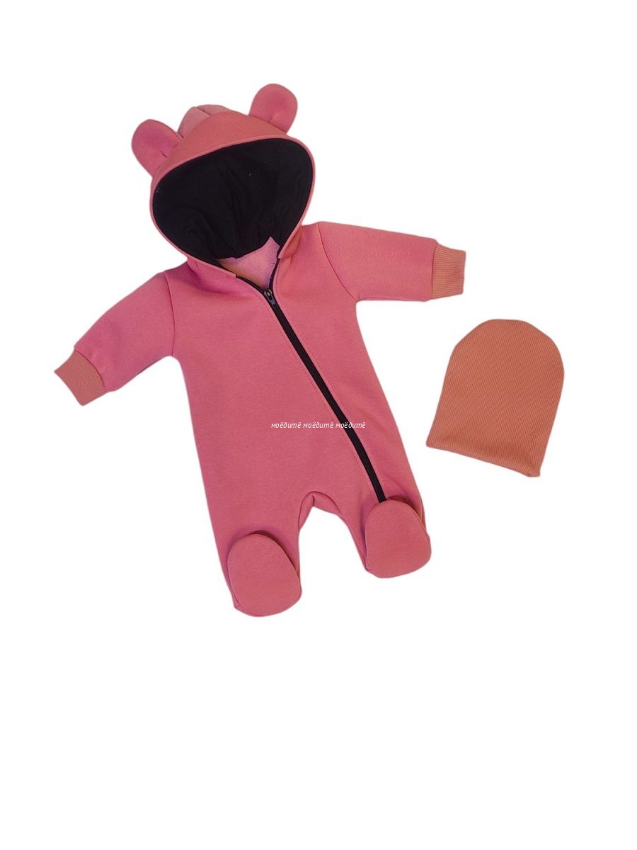 "МоёДитё" комбинезон с ушками + шапочка пыльная роза КС161 "Магнолия" ? Кызыле