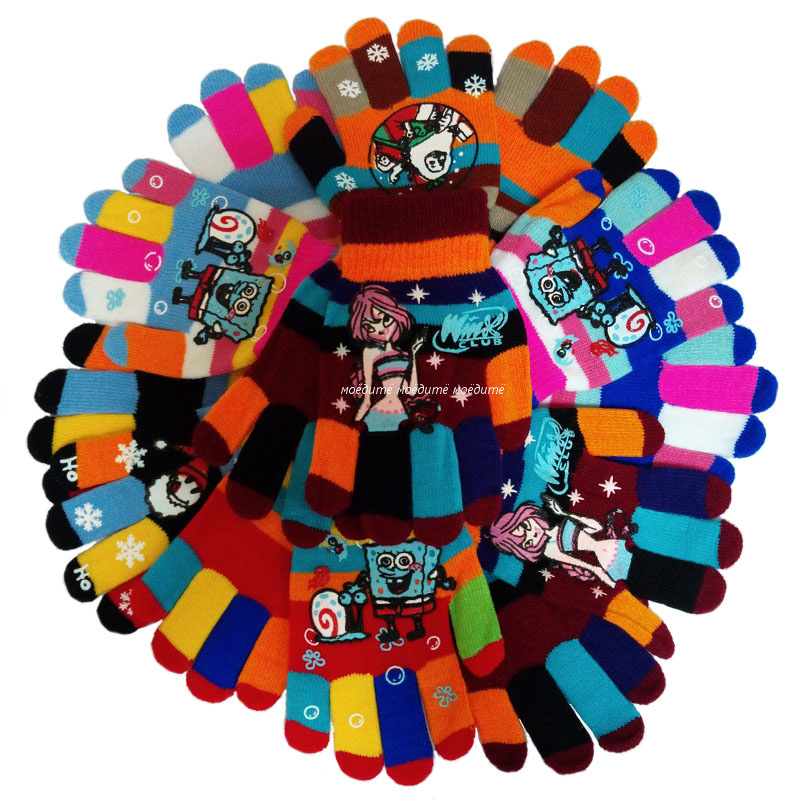 Перчатки с разноцветными пальчиками яркие в Кызыле